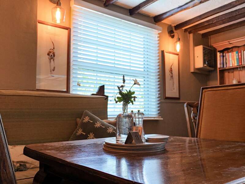 The Pheasant is a small country pub with beams running across the ceiling, and its dining area is spread across three rooms connected by an archway. Each room has a welcoming wood burner to keep the winter chill at bay, and there’s a genuinely homely feel to the place, with natural wood tables and plenty of interesting reading material within arm’s reach.